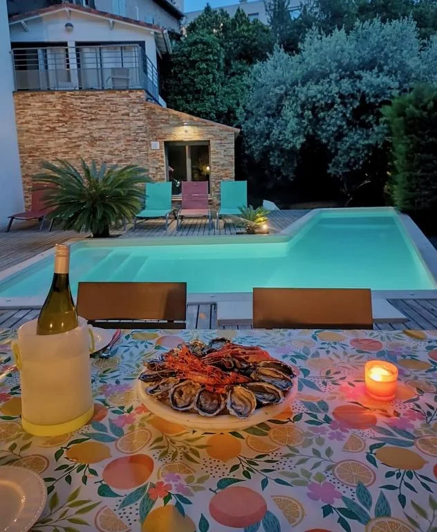 Vous pourrez profiter d’une terrasse avec pergola, une grande table avec barbecue et plancha, un espace bain de soleil, une piscine chauffée en saison, un coin salon cocooning, un boulodrome
